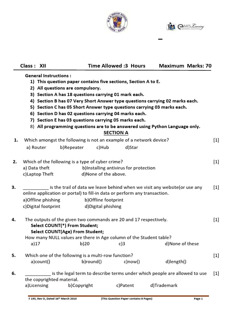 F 195, Rev O, Dated 16th March 2010 (This Question Paper contains 8 Pages) Page 1