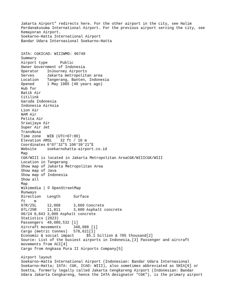 Soekarno–Hatta International Airport (Indonesian: Bandar Udara Internasional