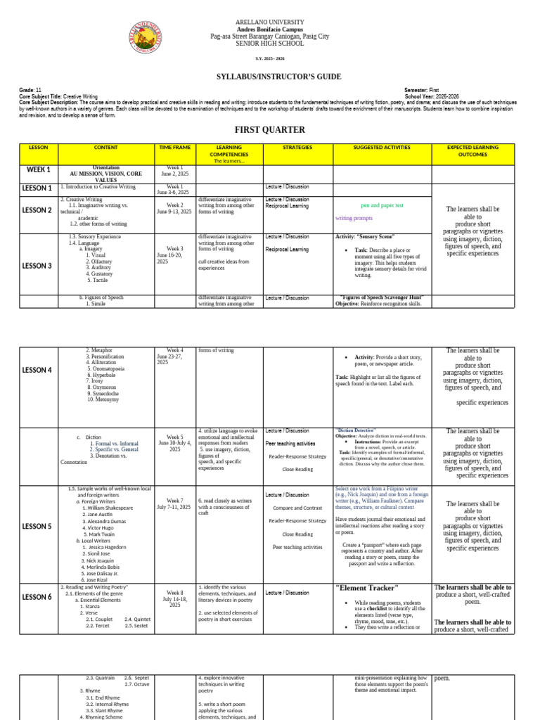Core Subject Title: Creative Writing School Year: 2025-2026