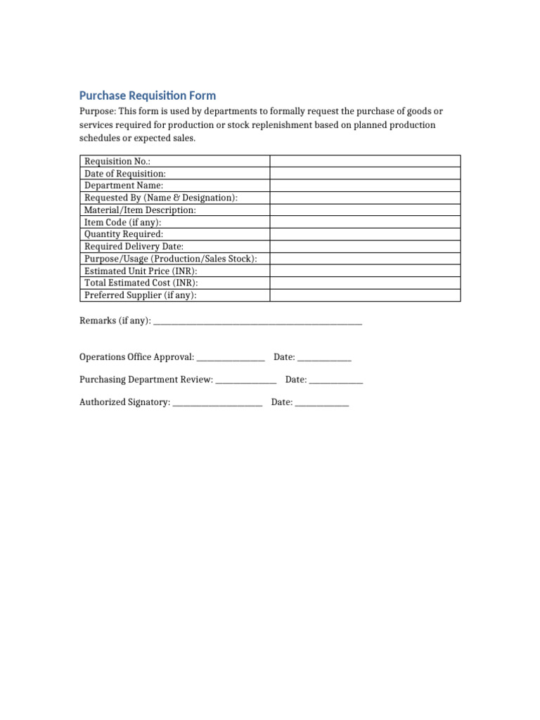Purpose: This form is used by departments to formally request the purchase of goods or