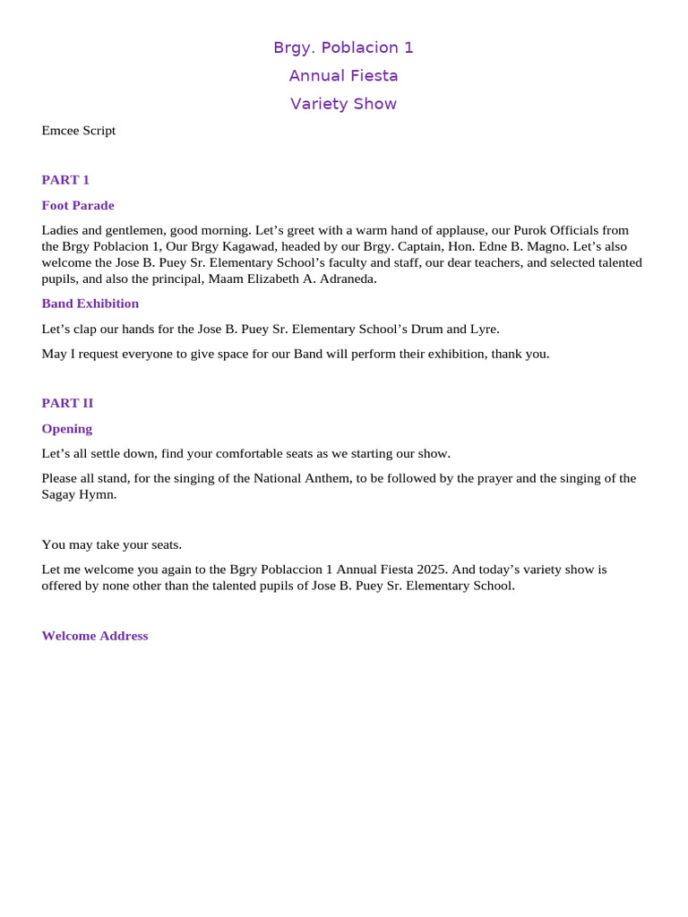 Let me welcome you again to the Bgry Poblaccion 1 Annual Fiesta 2025. And today’s variety show is