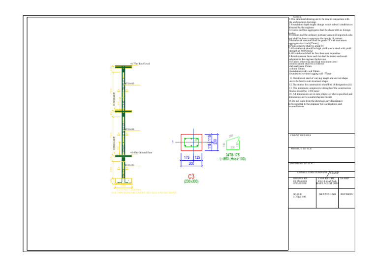 COLUMN REINFORCEMENT DETAILS AND SECTIONS SCALE: DRAWING NO REVISION :