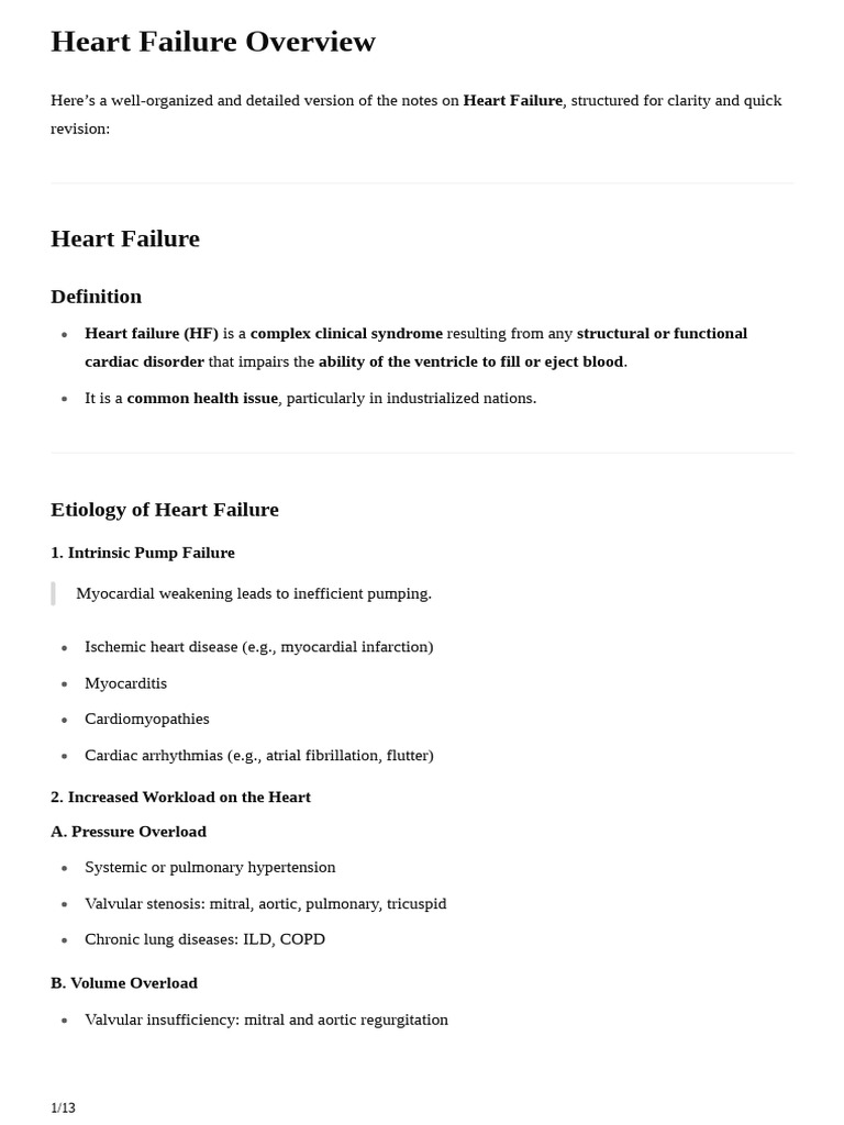 Here’s a well-organized and detailed version of the notes on Heart Failure, structured for clarity and quick