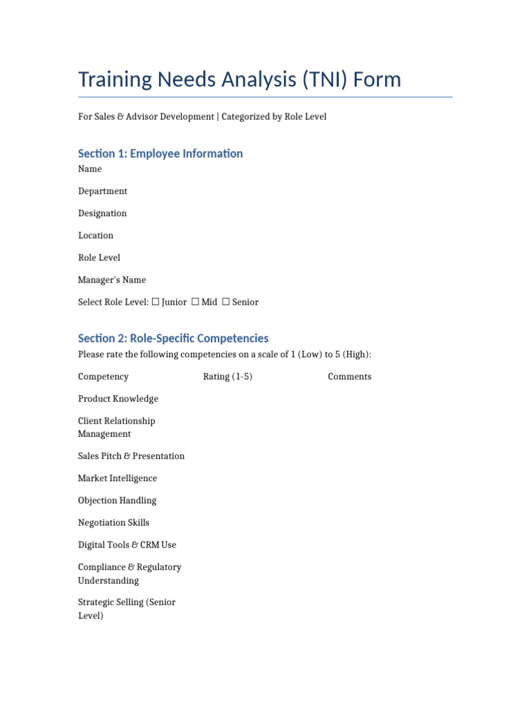 Training Needs Analysis (TNI) Form