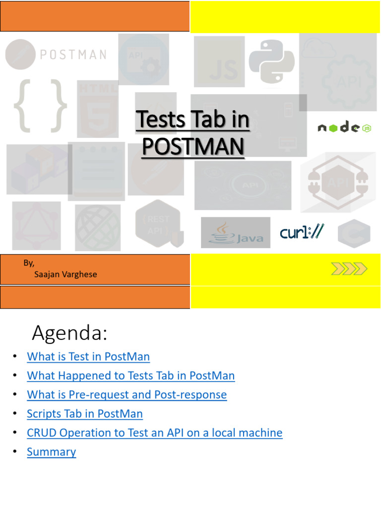• Test in PostMan is used to test the API’s Request Header,