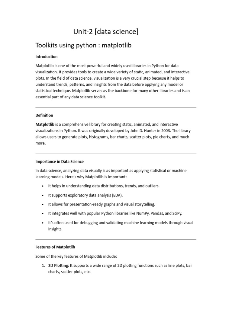 Matplotlib is an essen al visualiza on toolkit in Python that plays a key role in every data