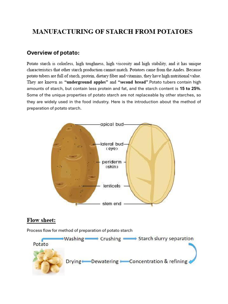 method of preparation of potato starch. The principle of drying is that the wet starch is suspended