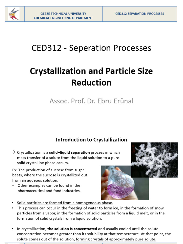 GEBZE TECHNICAL UNIVERSITY CED312 SEPARATION PROCESSES