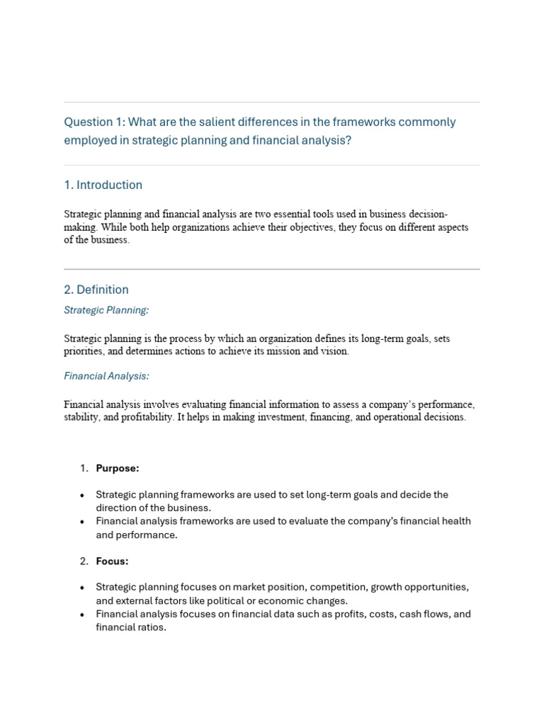 employed in strategic planning and financial analysis?