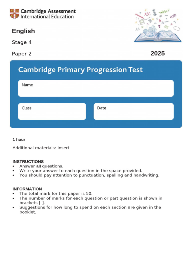 The total mark for this paper is 50.