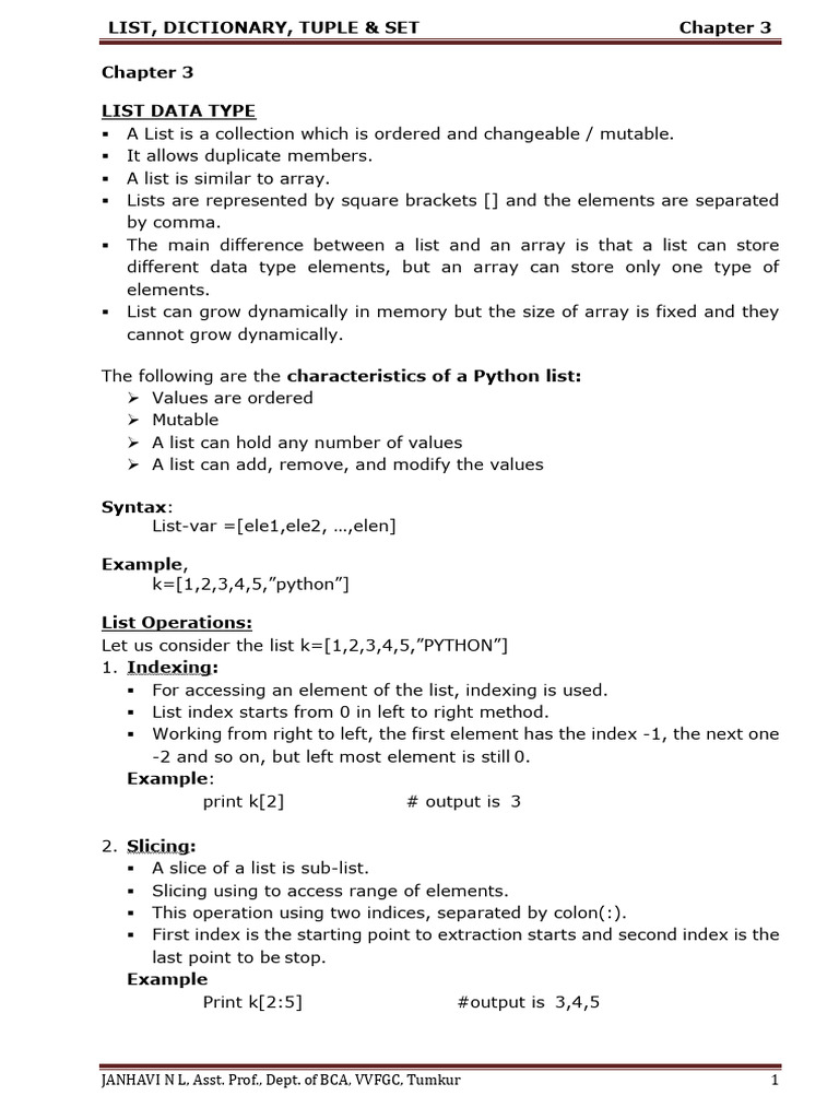 LIST, DICTIONARY, TUPLE & SET Chapter 3