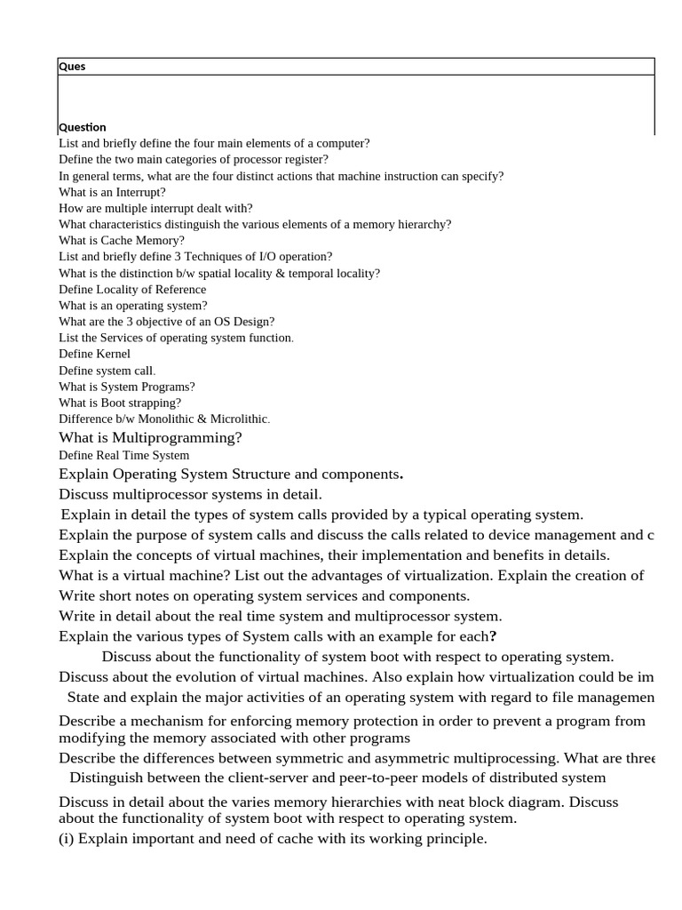 Explain Operating System Structure and components.