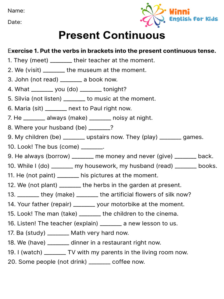 Exercise 1. Put the verbs in brackets into the present continuous tense.