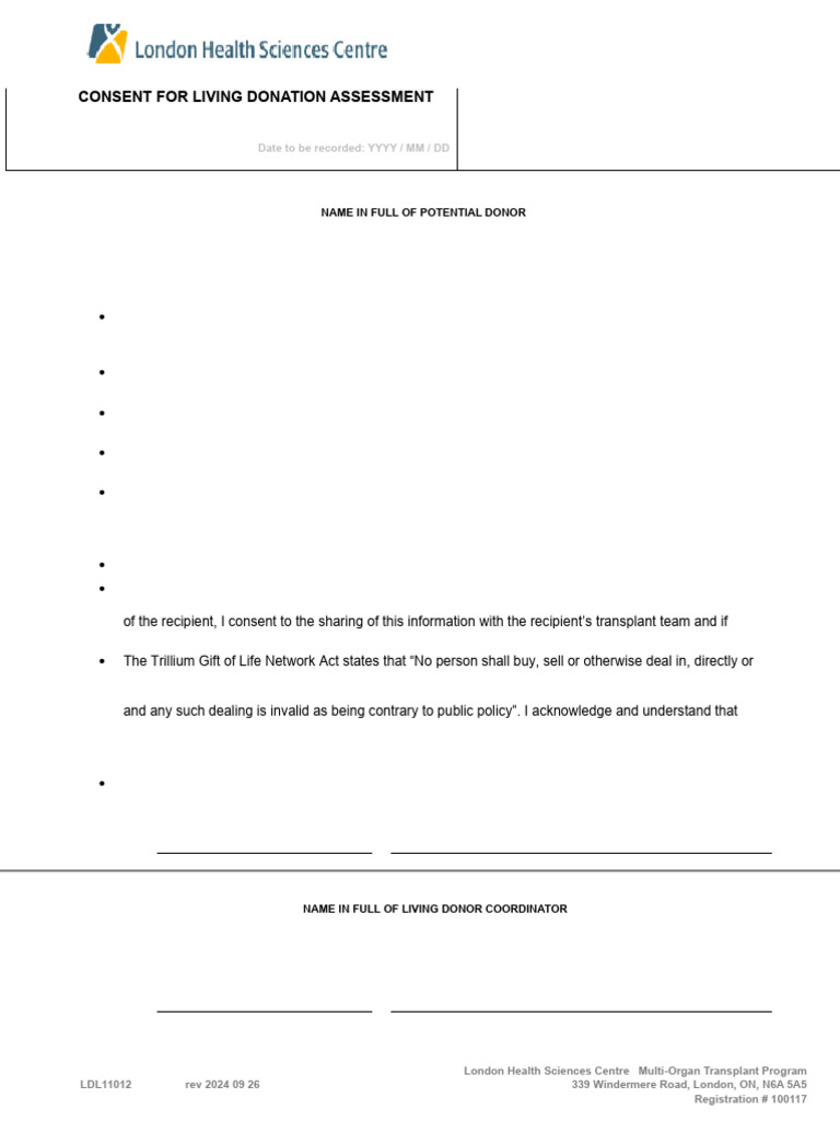 CONSENT FOR LIVING DONATION ASSESSMENT
