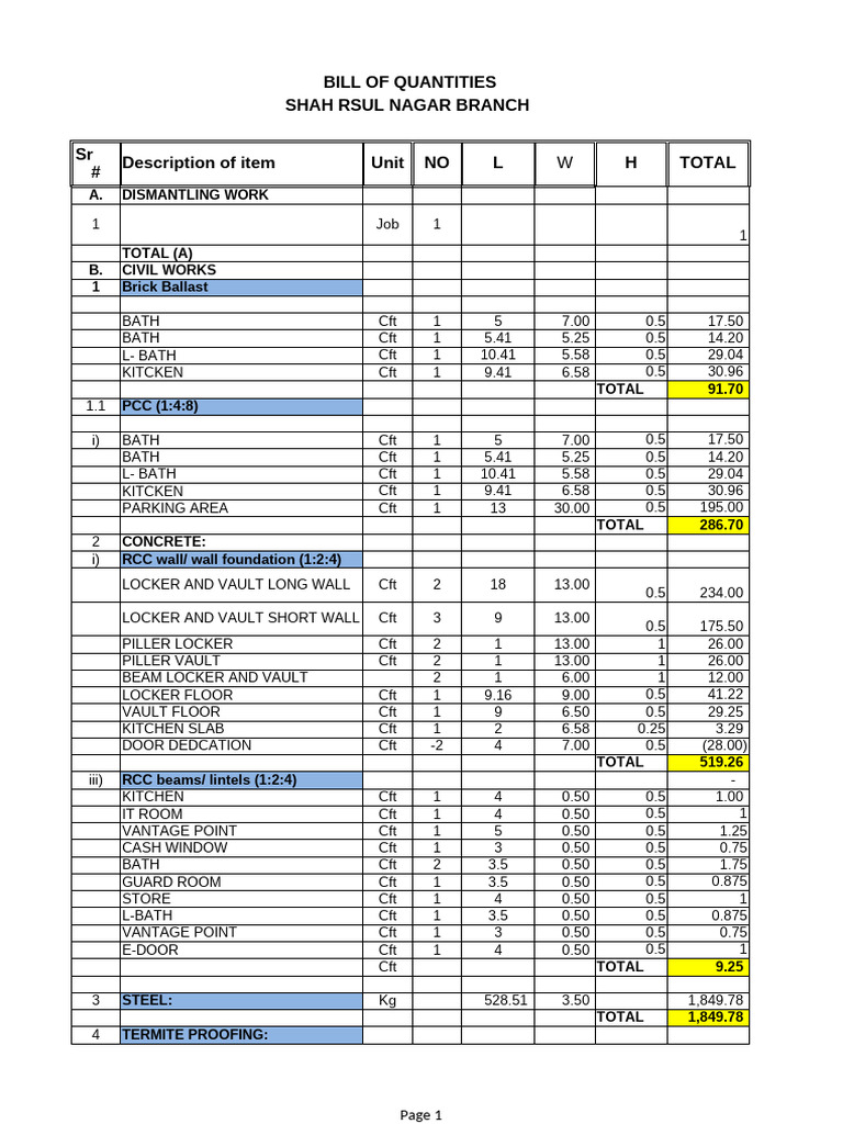 KITCHEN SLAB Cft 1 2 6.58 0.25 3.29