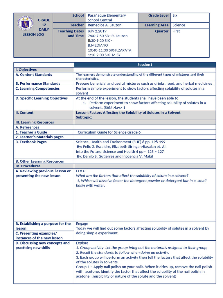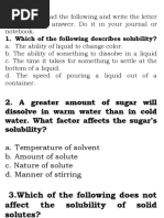 C. Learning Competencies Perform simple experiment to show factors affecting solubility of solutes in a