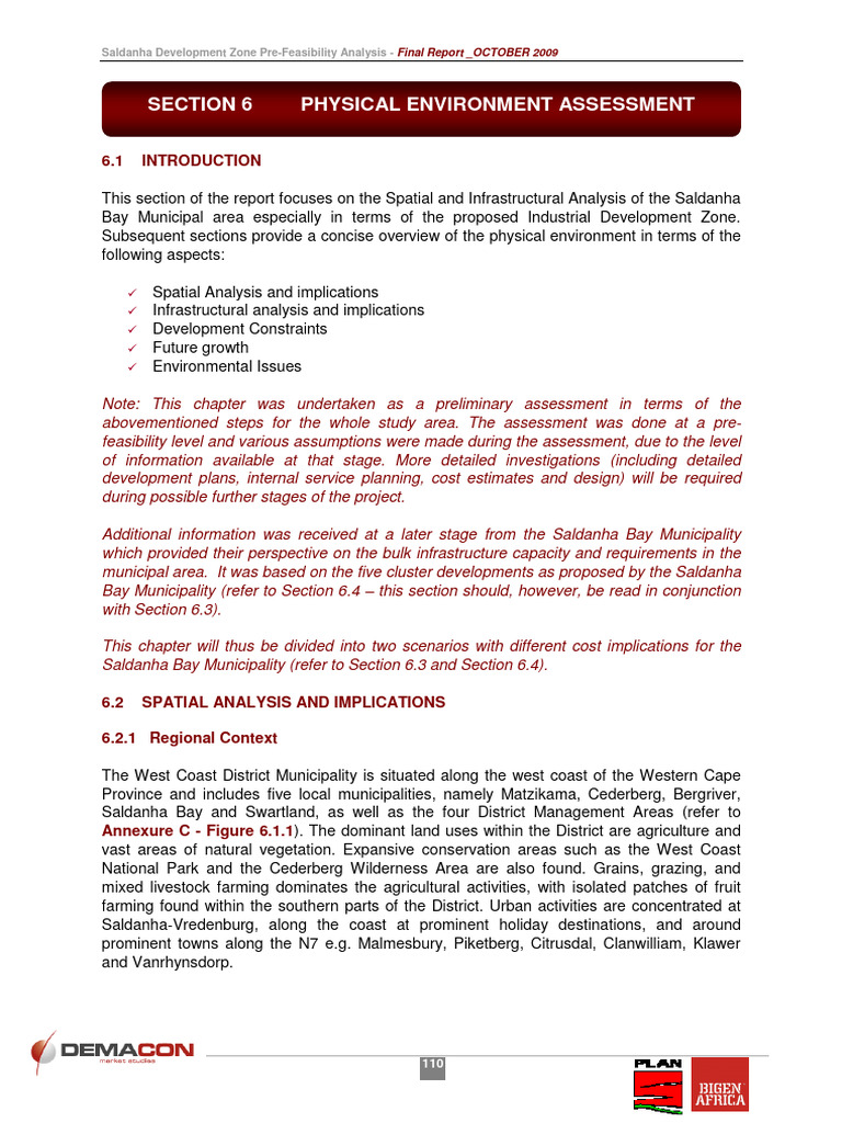 Saldanha Development Zone Pre-Feasibility Analysis - Final Report _OCTOBER 2009