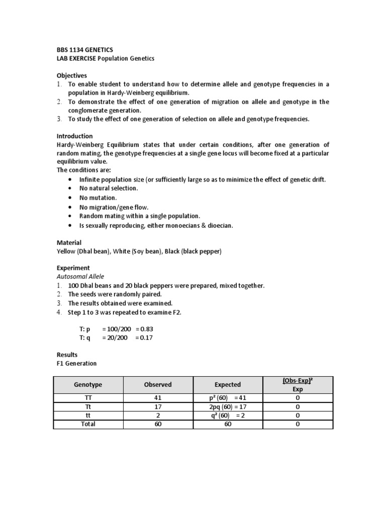 1. To enable student to understand how to determine allele and genotype frequencies in a