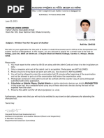 With reference to your application for the post of Trainee Junior Officer, your written test will be held on Date: 20 July, 2024