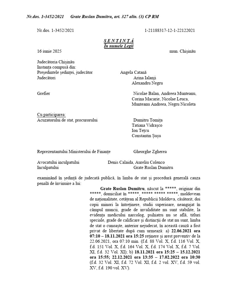 Nr.dos. 1-3452/2021 Grate Ruslan Dumitru, art. 327 alin. (3) CP RM
