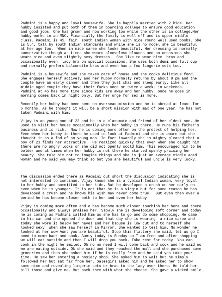 class. Padmini is 45, fair, south Indian woman with nice round well used boobs. She