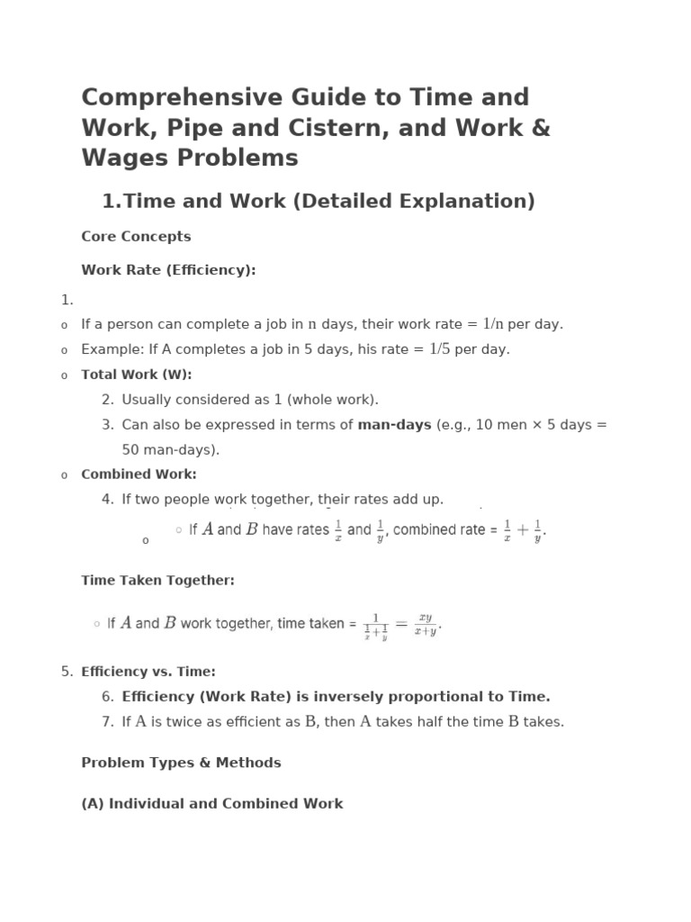 2. Example: A pipe fills a tank in 4 hours → Rate = 1/4.