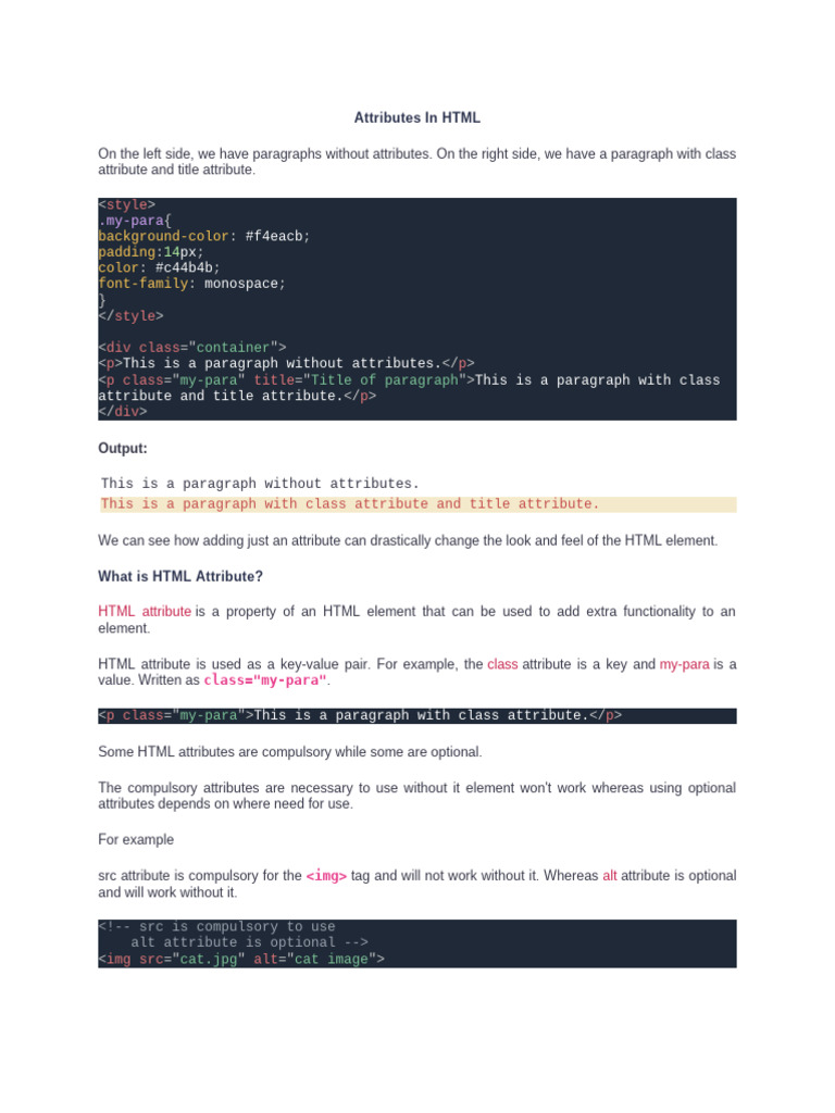 <p class="my-para" title="Title of paragraph">This is a paragraph with class