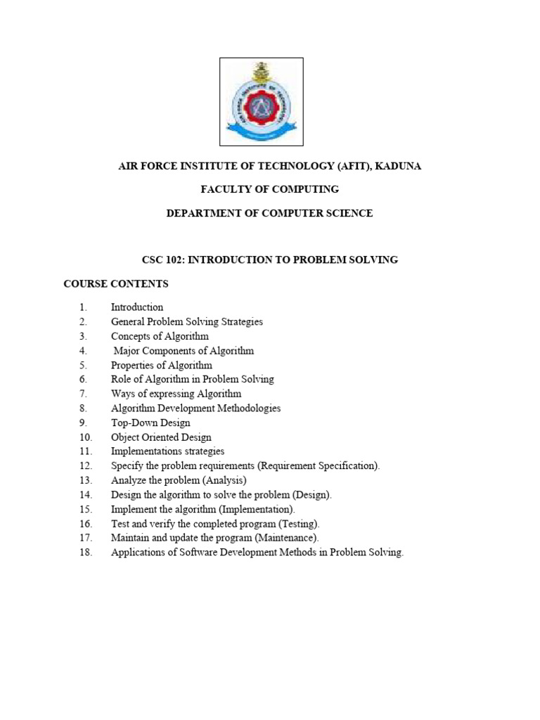 CSC 102: INTRODUCTION TO PROBLEM SOLVING