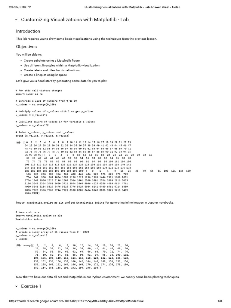 2/4/25, 3:36 PM Customizing Visualizations with Matplotlib - Lab Answer sheet - Colab