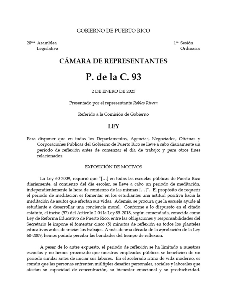 personas. Este proyecto de ley busca establecer un momento de introspección diaria en