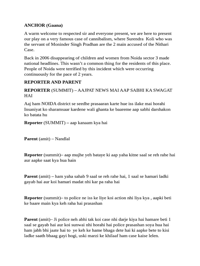 our play on a very famous case of cannibalism, where Surendra Koli who was