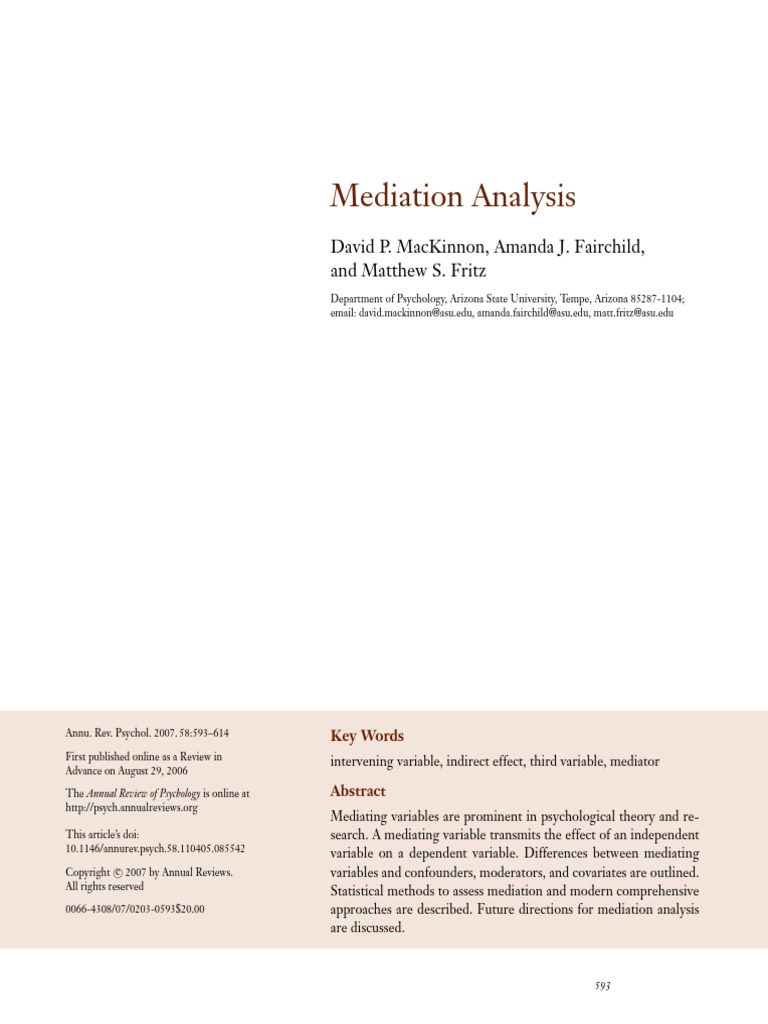 David P. MacKinnon, Amanda J. Fairchild, and Matthew S. Fritz p p p p p p p p p p p p p p p p p p p p p 593