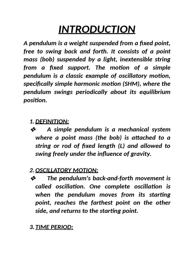 RELATION OF PENDULUM WITH NEWTON’S FIRST