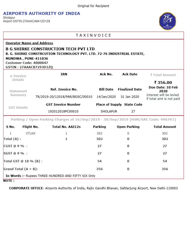 Airport GSTIN:27AAACA6412D1Z8