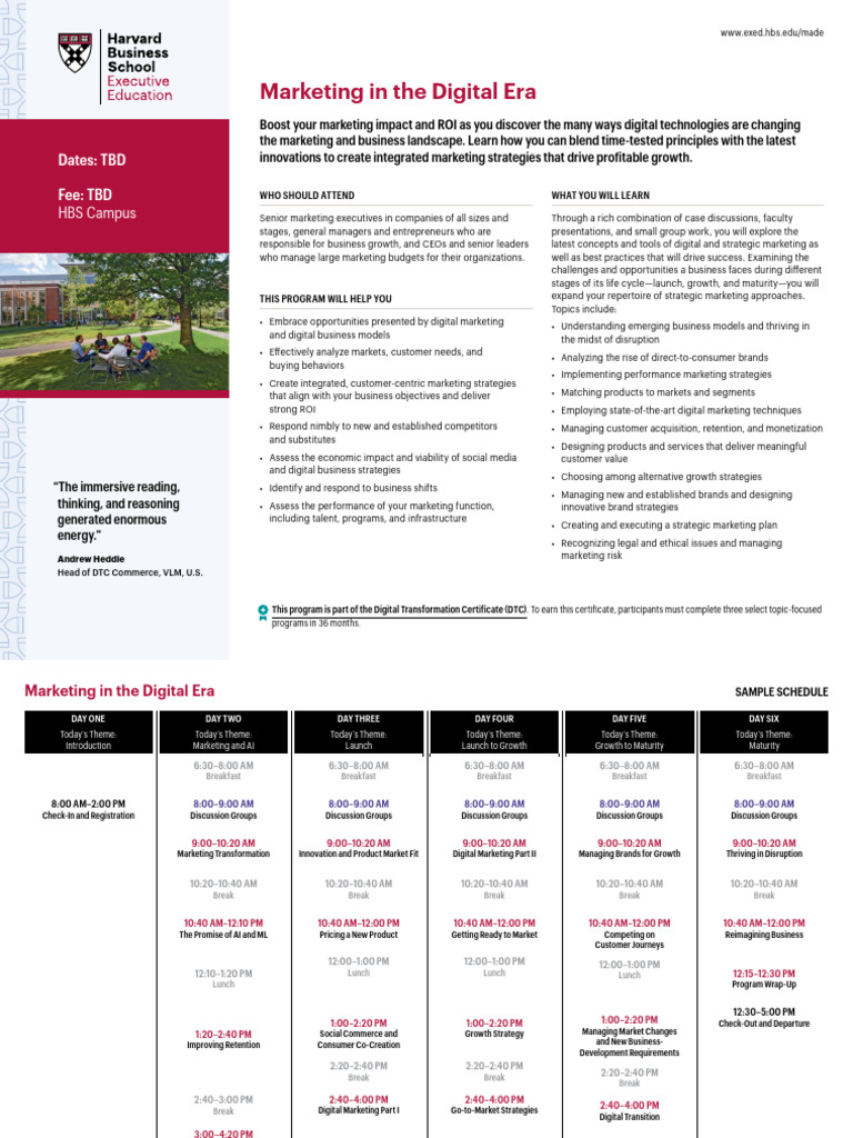 HBS Campus Senior marketing executives in companies of all sizes and Through a rich combination of case discussions, faculty