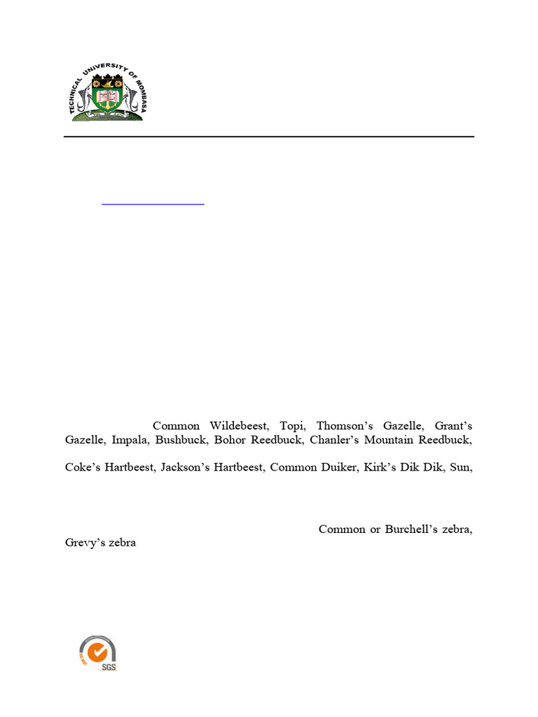 TOPIC SEVEN: MAMMALS OF EAST AFRICA: