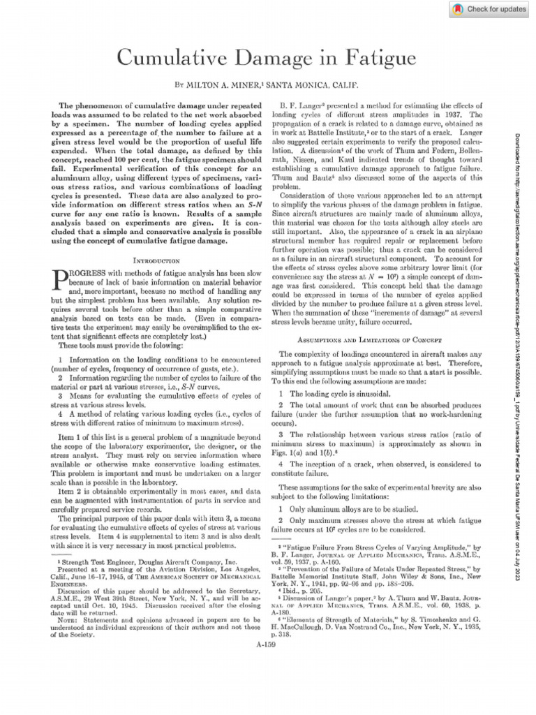 T h e p h e n o m e n o n of cumulative damage under repeated B. F. Langer2 presented a method for estimating the effects of