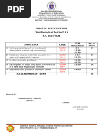 TABLE OF SPECIFICATION IN SCIENCE VI