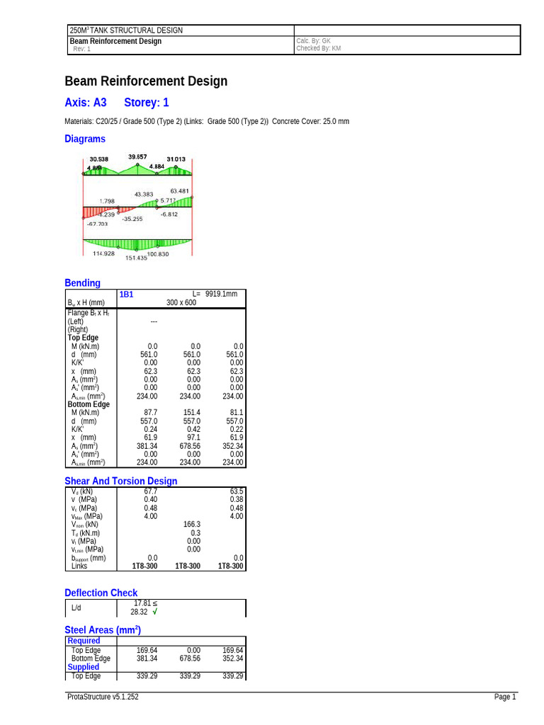 Materials: C20/25 / Grade 500 (Type 2) (Links: Grade 500 (Type 2)) Concrete Cover: 25.0 mm