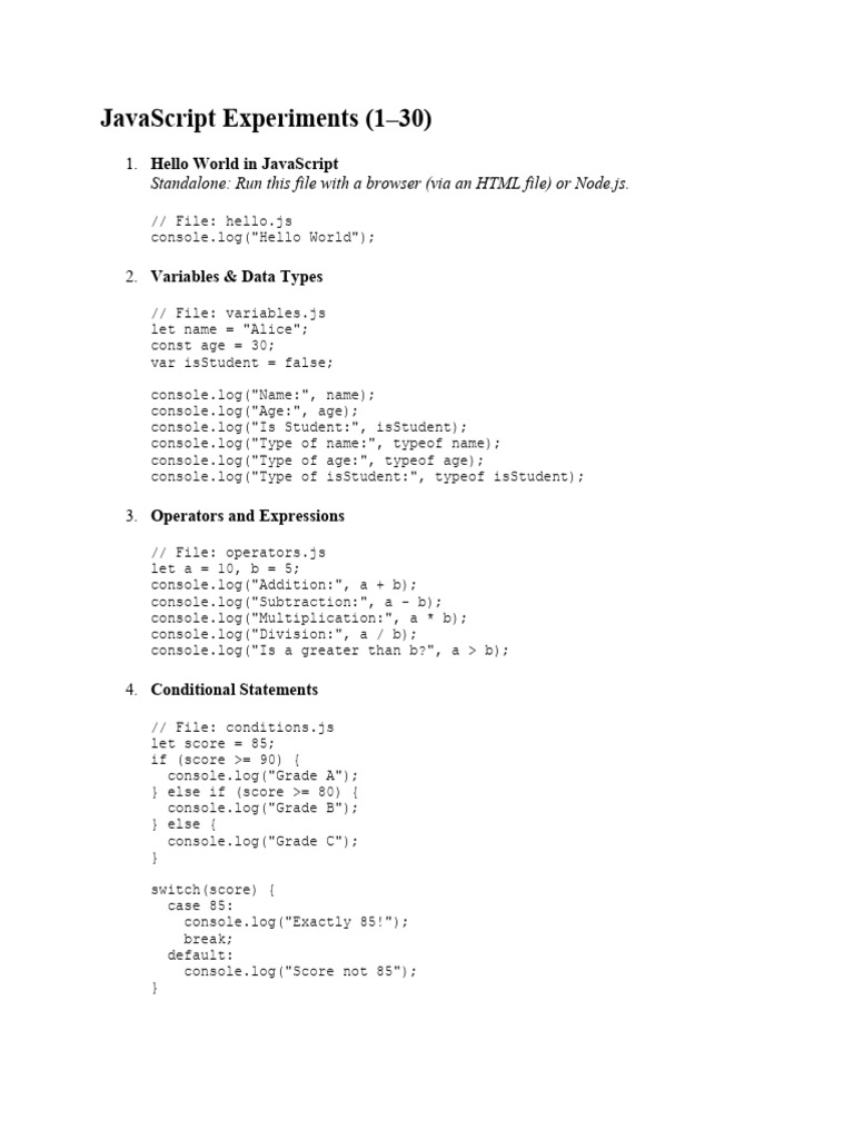 JavaScript Experiments (1–30)