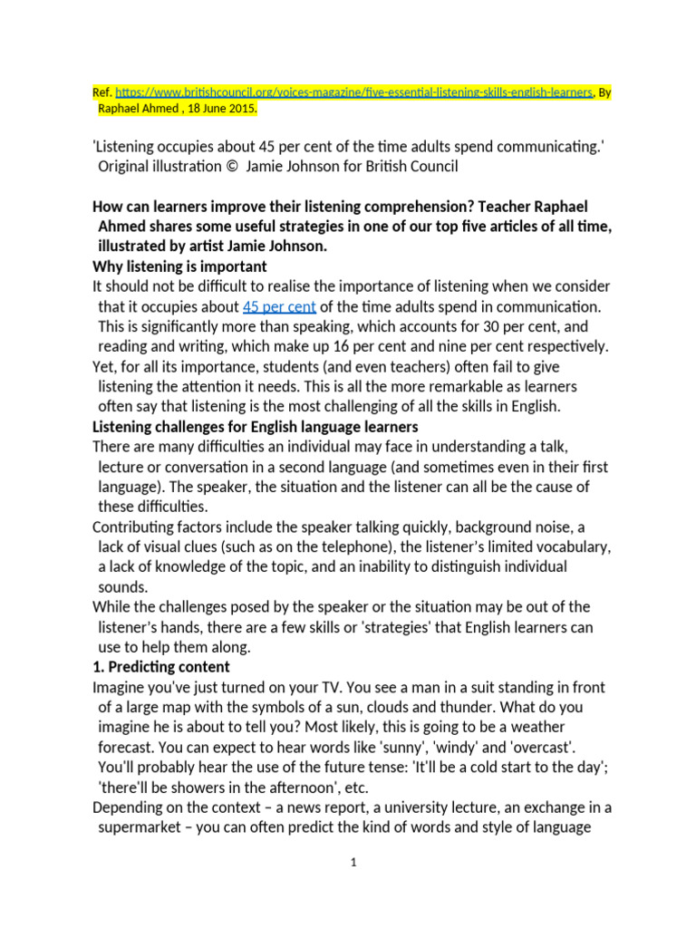 listener’s hands, there are a few skills or 'strategies' that English learners can