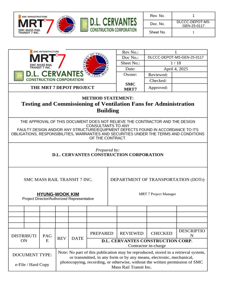 Administration Building”. This method statement reflects the requirements of "MRT 7