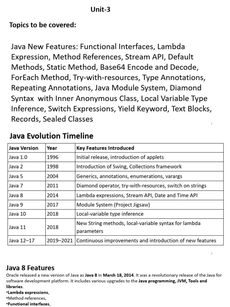 Java 12–17 2019–2021 Continuous improvements and introduction of new features