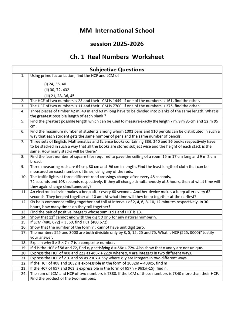 1. Using prime factorisation, find the HCF and LCM of