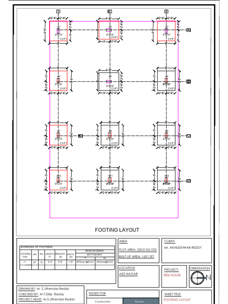 PROJECT HEAD: Ar.S.Jithendar Reddy FOOTING LAYOUT