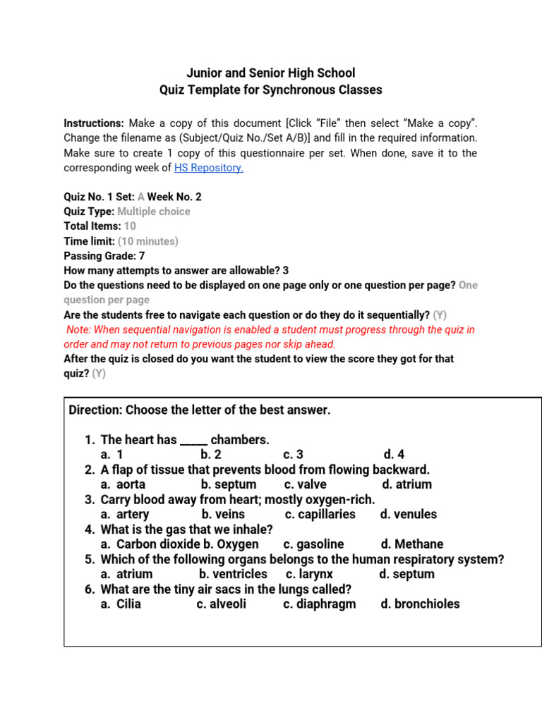 Change the filename as (Subject/Quiz No./Set A/B)] and fill in the required information.