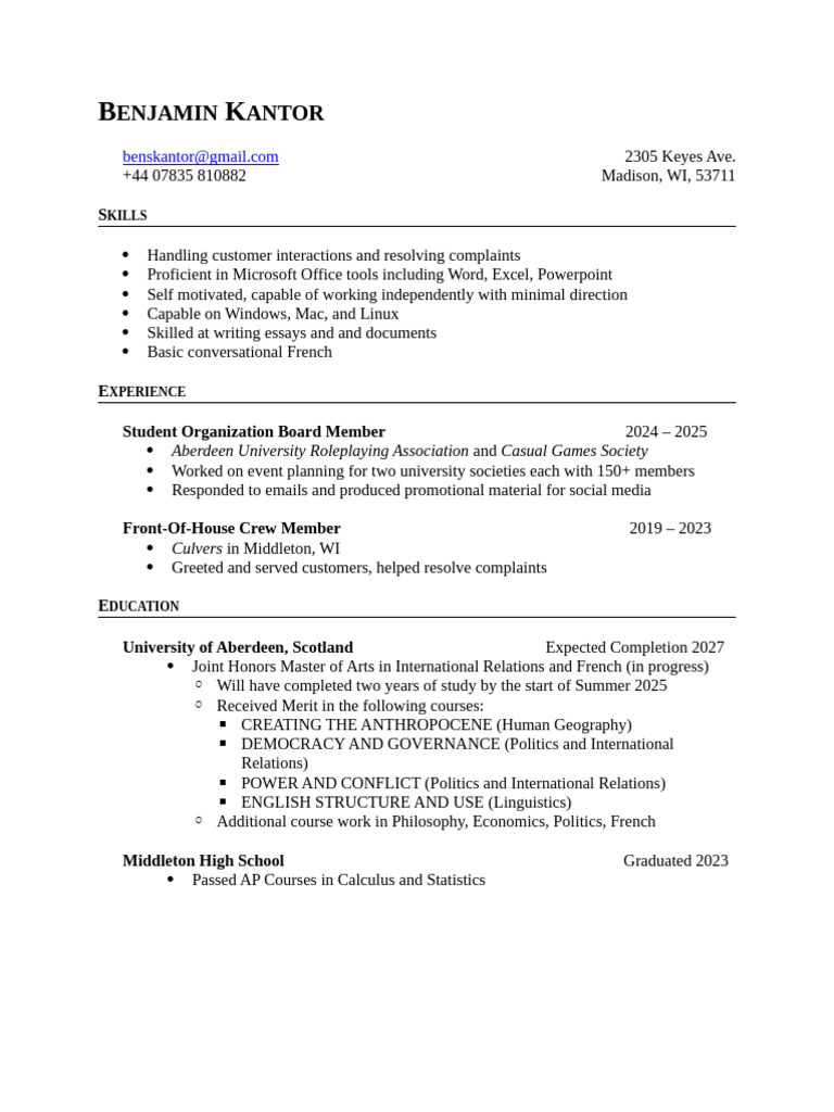 ◦ Additional course work in Philosophy, Economics, Politics, French