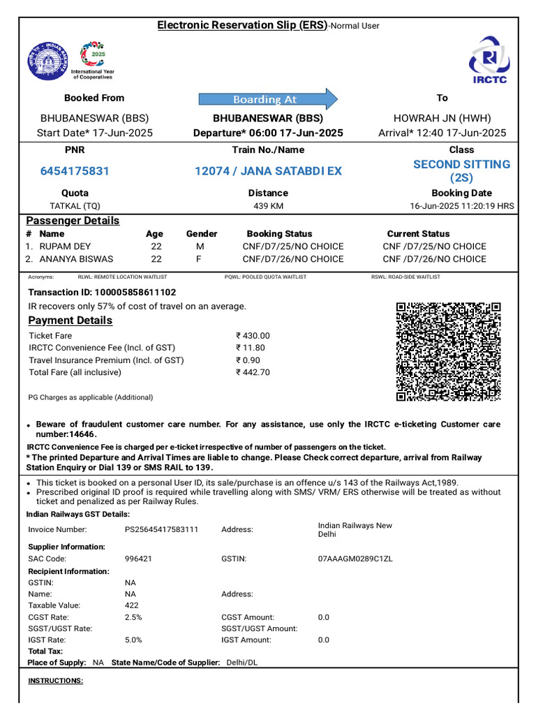 TATKAL (TQ) 439 KM 16-Jun-2025 11:20:19 HRS
