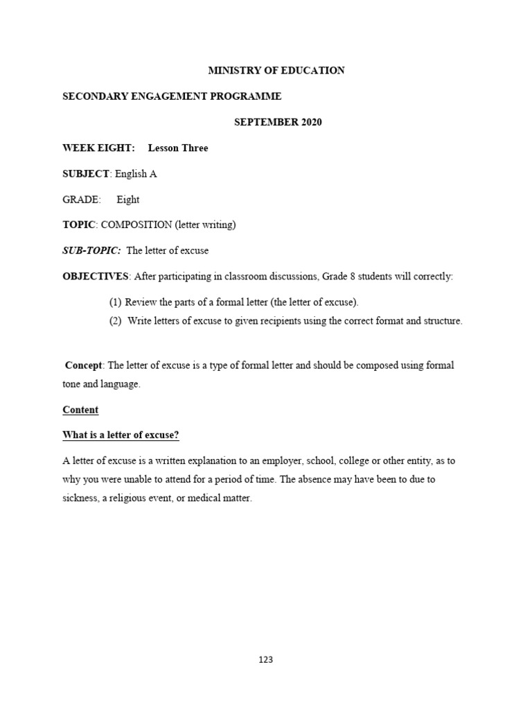 SUB-TOPIC: The letter of excuse