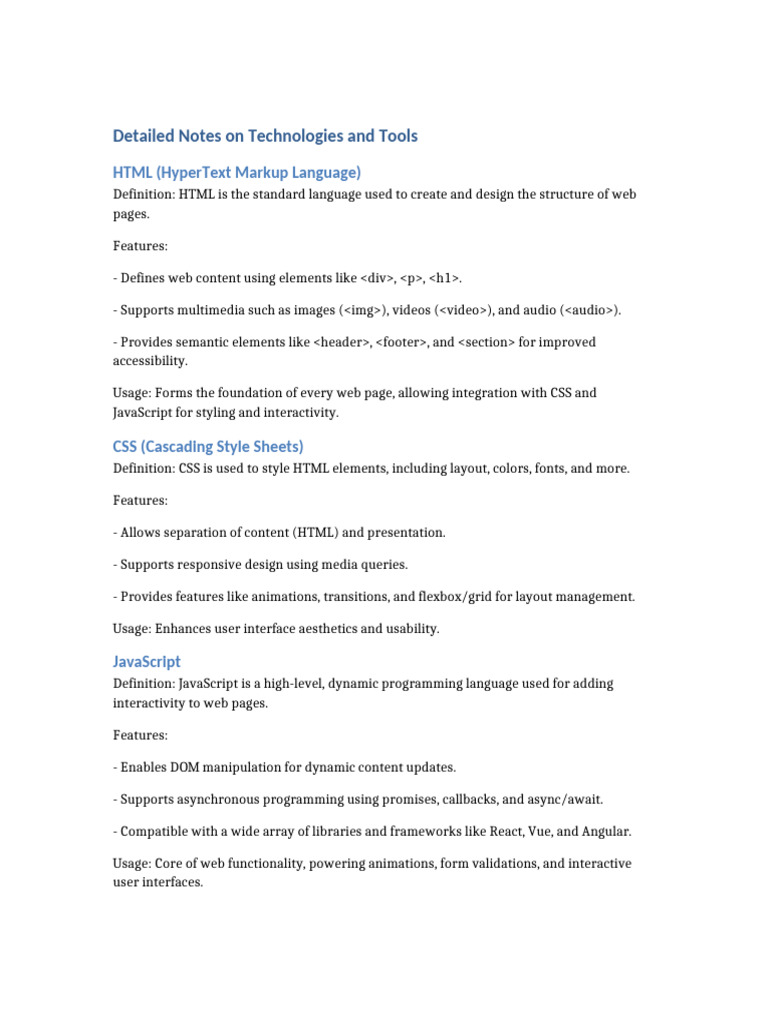 Definition: CSS is used to style HTML elements, including layout, colors, fonts, and more.